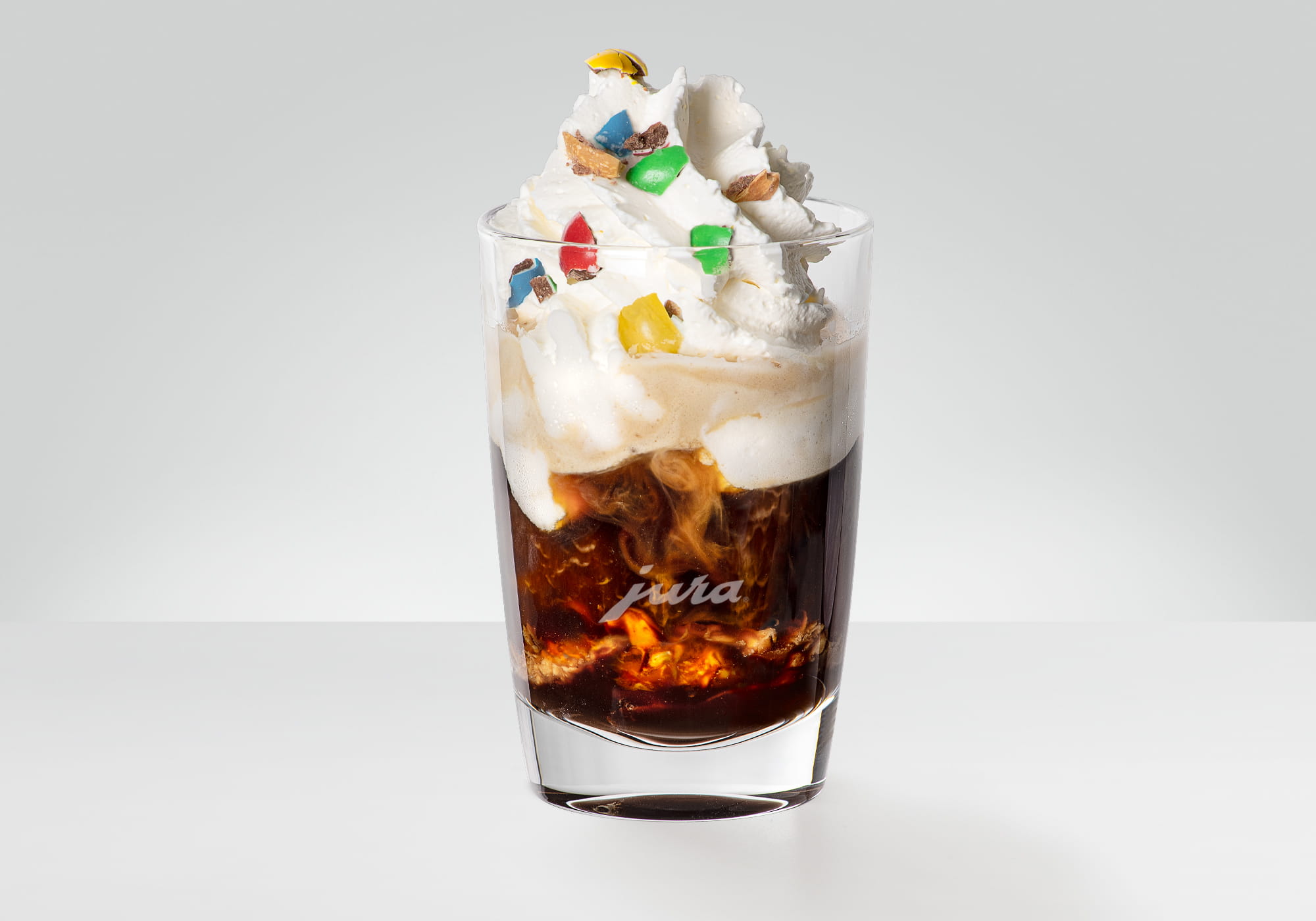 Emiettez les lentilles de chocolat et décorez la spécialité de café avec les brisures obtenues.